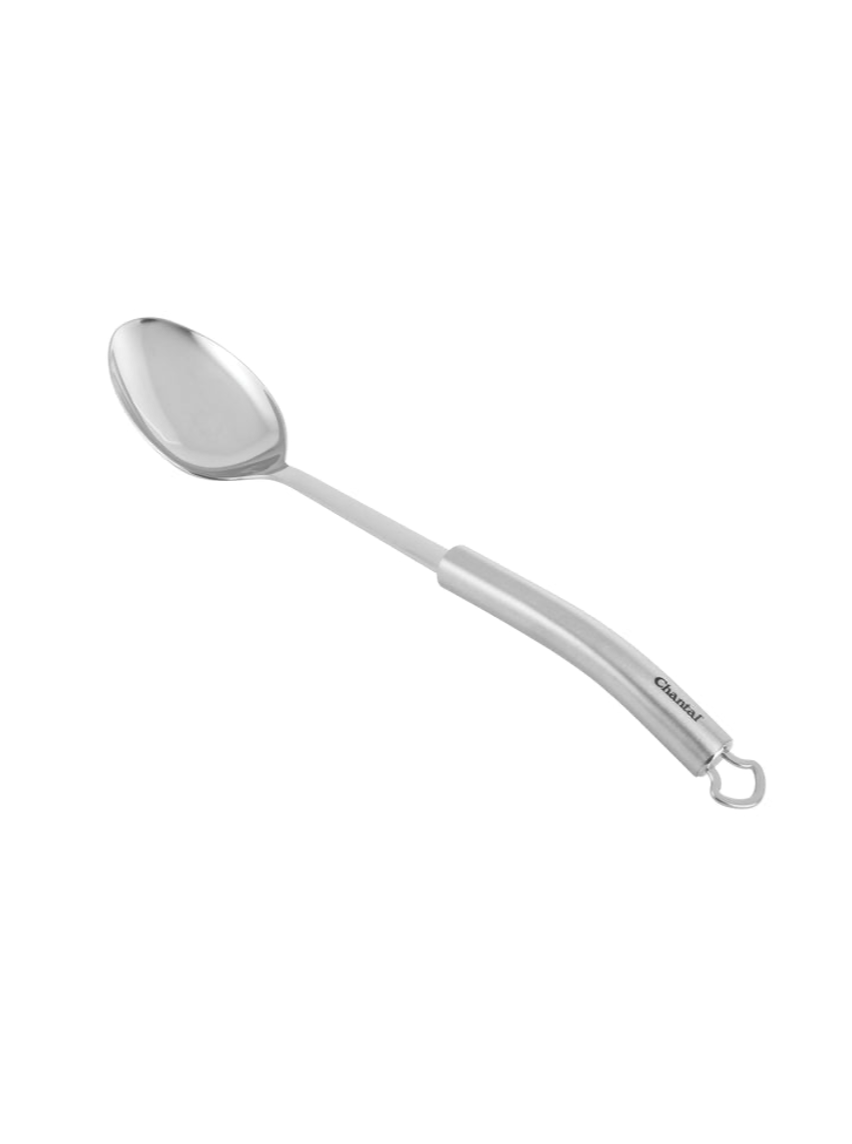 Our 14” solid spoon is great for stirring and serving! The solid bowl of the spoon prevents liquids from leaking through. The angled handle really shines on this piece providing maximum control for the chef.