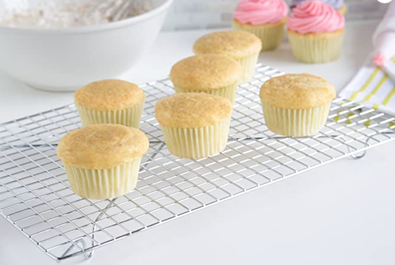 This sturdy, lightweight 14x10 Cooling Rack is the ideal choice for elevating your baking. Its sleek chrome finish and uniform cooling allows for guaranteed crisp undersides, perfect for cookies, cakes, and other pastries. Look no further for the perfect addition to your kitchen.