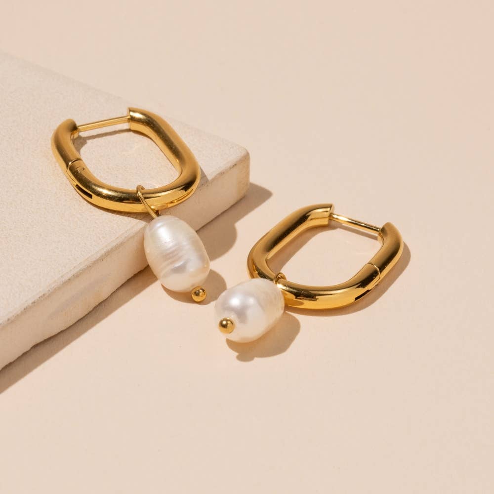 Enhance your look with these elegant 18K gold plated stainless pearl earrings. Made from high-quality materials, these earrings are perfect for any occasion. The gold plating adds a touch of luxury, while the pearls bring a classic and timeless appeal. Stand out with these stunning earrings.