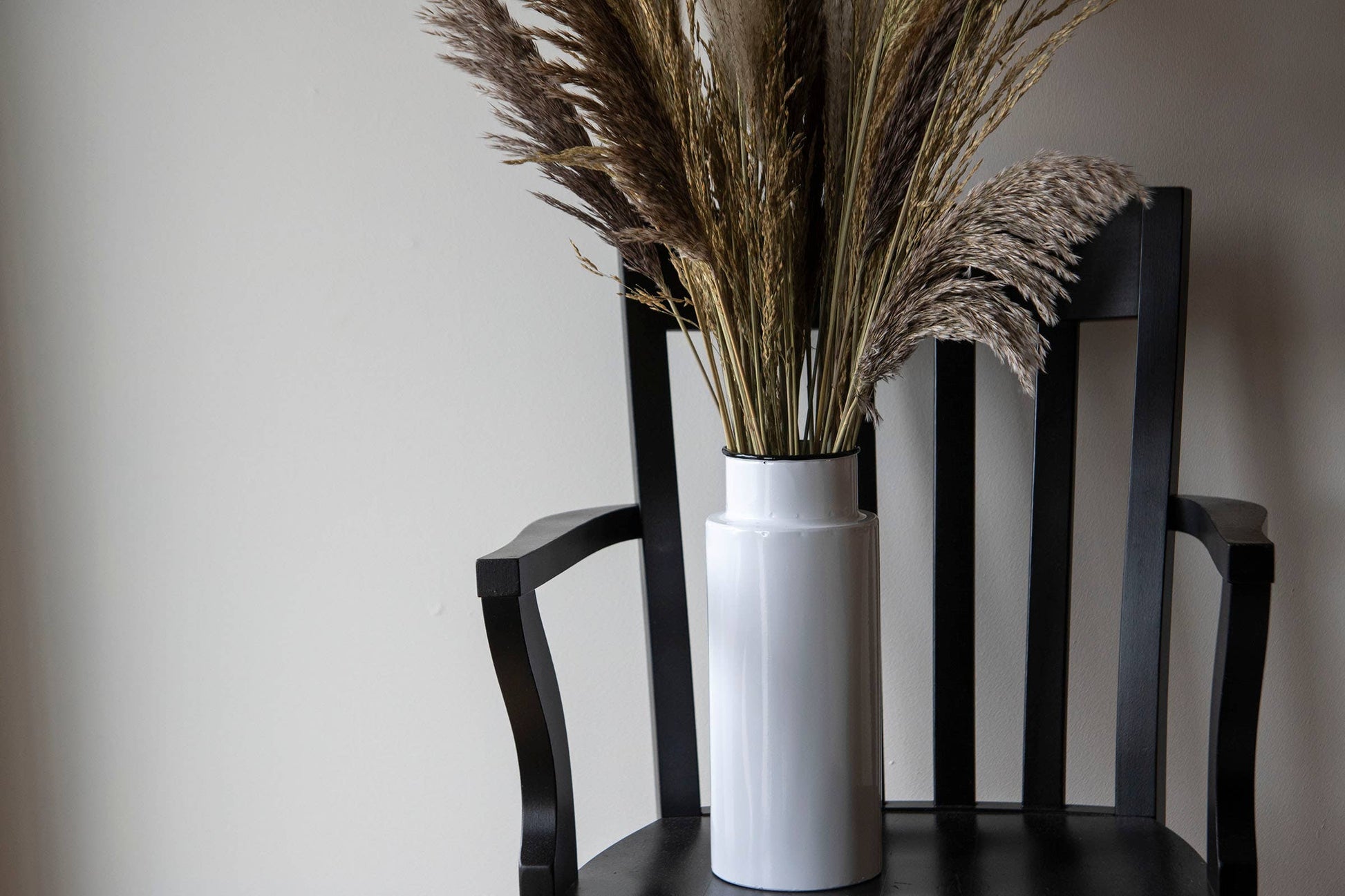 A simple, yet timeless vase from Foreside Home & Garden characterized by a clean, white enamel finish and sleek black detailing on the rim. The perfect infusion of modern farmhouse, a design made to stand the test of time. Use for faux greenery, botanicals, or stems. Switch out stems from season to season to make this a truly transitional piece.