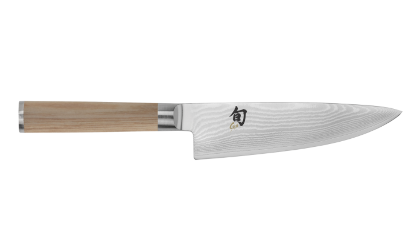 .This is every cook's must-have knife. The Shun Classic Blonde 8-in. Chef's Knife is an all-purpose knife ideal for a full range of cutting tasks. This new blonde-handled version of our Classic Chef's knife features an 8-inch blade ideal for preparing fruits, vegetables, and proteins. The wide blade keeps knuckles off the cutting board and is exceptionally handy when transferring cut food from board to pan. With its curved belly, this chef's knife can be gently "rocked" through fresh herbs or spices to produce a very fine mince. Shun Classic Blonde's thin, sharp blades makes it lighter and less tiring to use than comparable European-style chef's knives.