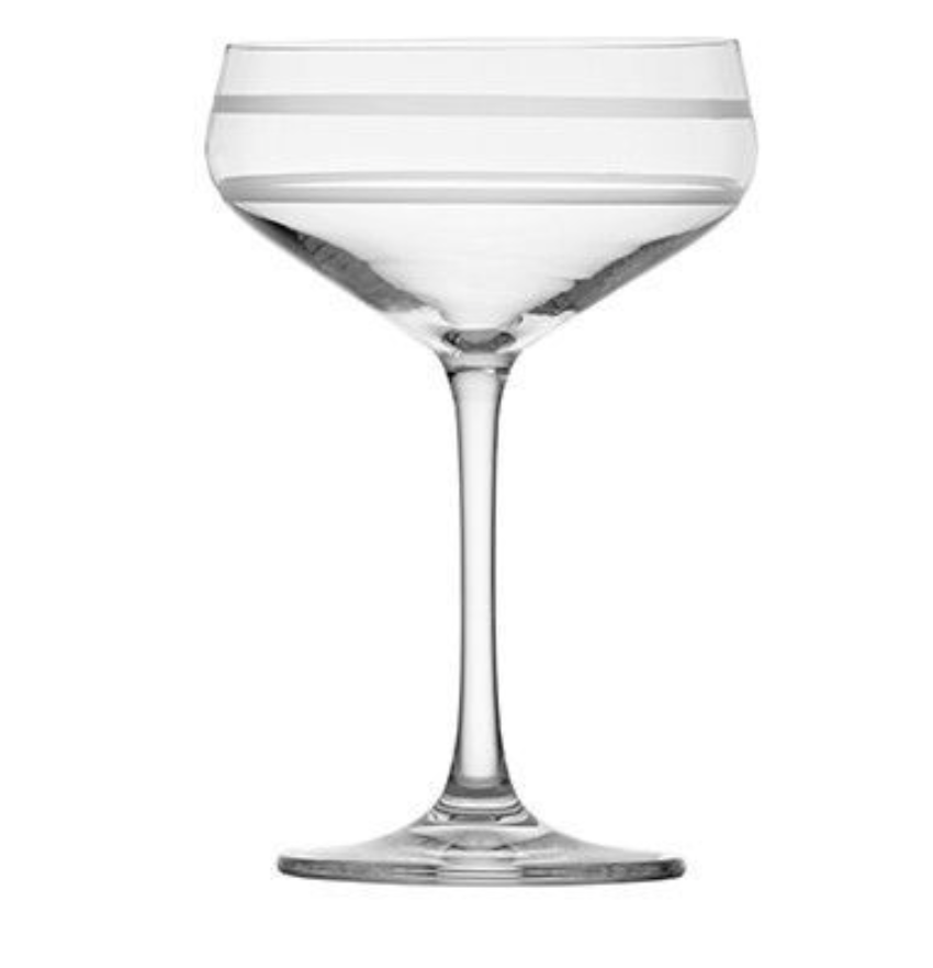 The glass for all of the iconic cocktails – Sidecar, Daiquiri, Manhattan. The saucer-shaped bowl and long, graceful stem allow the aromatics and flavors of spirit-forward cocktails to be revealed. With effervescent points etched on the inside of the glass, our coupe functions great for bubbly champagne cocktails by extending the lifespan of the fizz.