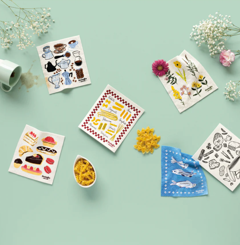 Made from cotton and plant-based cellulose fibers, these compostable cloths are an established must-have in Scandinavia. They offer a sustainable alternative to sponges, dishcloths and paper towels and become soft and pliable when wet for easy clean-up.