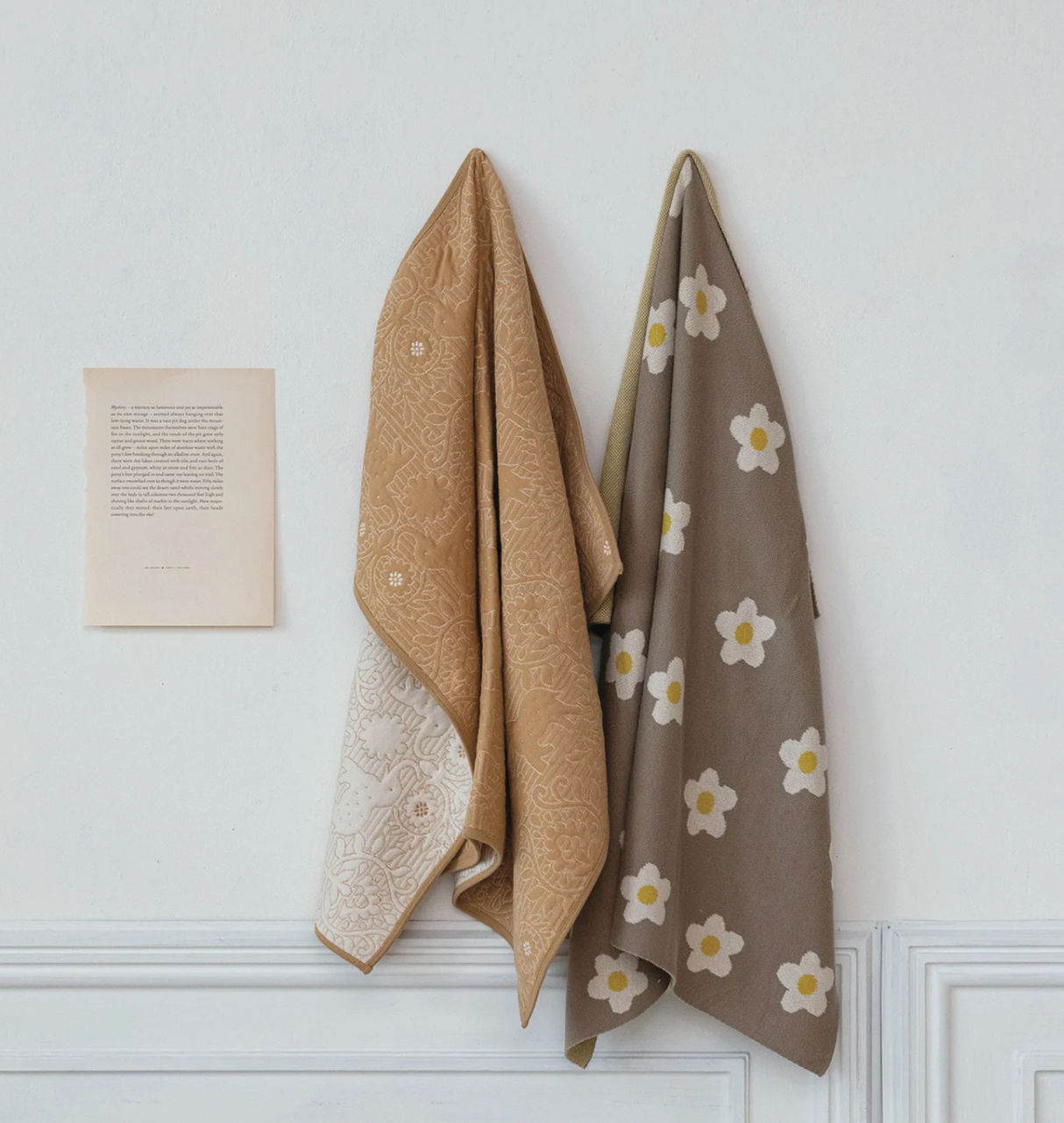 Add a layer of comfort and style to the baby's nursery with this Brown and White Cotton Knit Baby Blanket with Printed Flowers. The charming design features a brown base adorned with white floral patterns, creating a soothing and picturesque aesthetic. Its rectangular shape and perfect dimensions offer versatility, while the pure cotton material ensures a soft and nurturing embrace. It measures 40.0 inches in length and 32.0 inches in width, ensuring a snug and cozy fit for every little one. This blanket is an excellent choice for parents who value quality and design in their children's accessories.