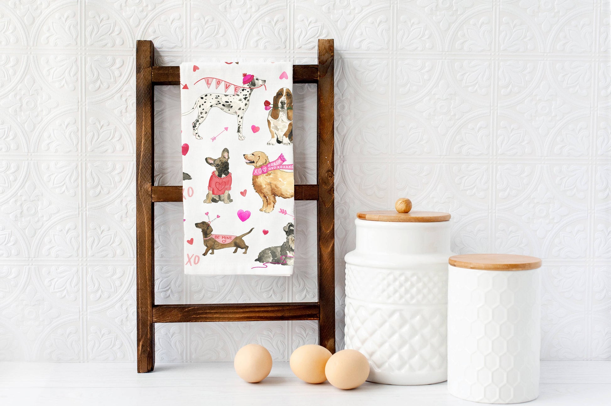 Cozy Valentine Dogs Kitchen Towel - Valentine's Tea Towel