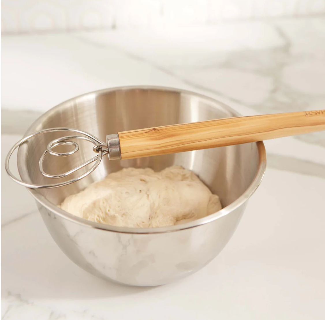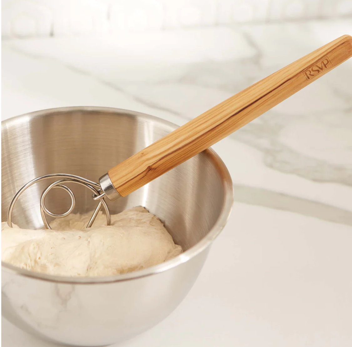 Our RSVP International 11-inch Danish-inspired Dough Whisk, marries timeless design with unparalleled functionality. The handle, crafted from Italian-sourced olive wood, offers a comfortable grip and a touch of sophistication. The rust-resistant stainless steel wire head tackles thick batters and doughs, ensuring efficient mixing without clogging or bending.
