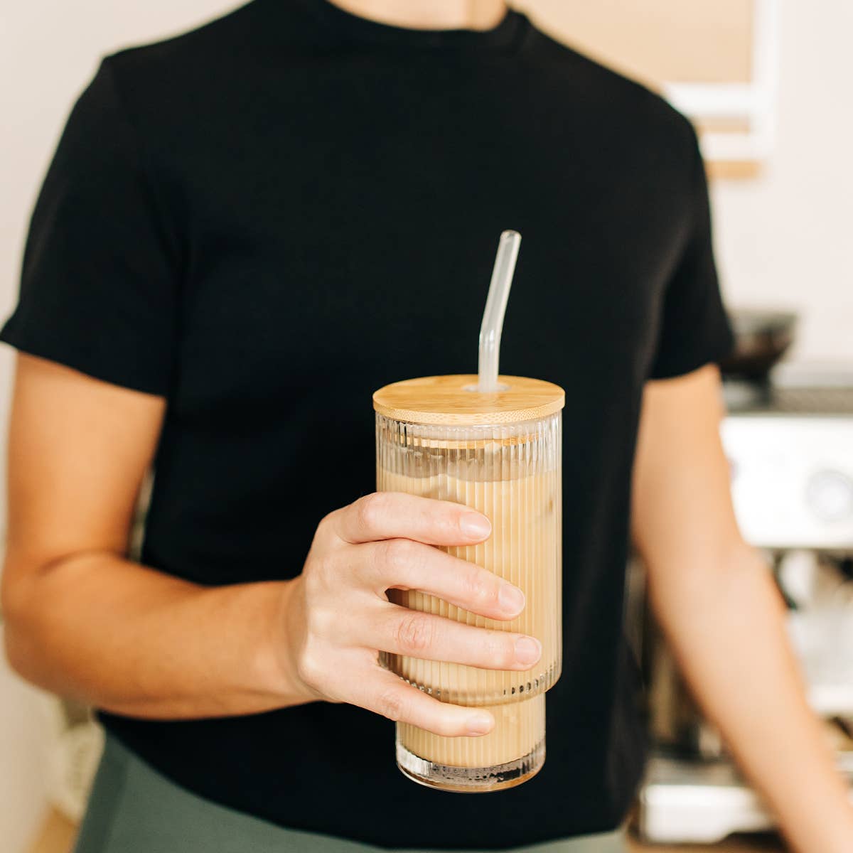 Looking for the perfect vessel to enjoy your iced lattes on the go or at home? Look no further than this trendy and stylish glass cup, complete with a matching straw. Say goodbye to boring coffee cups and hello to a new go to.