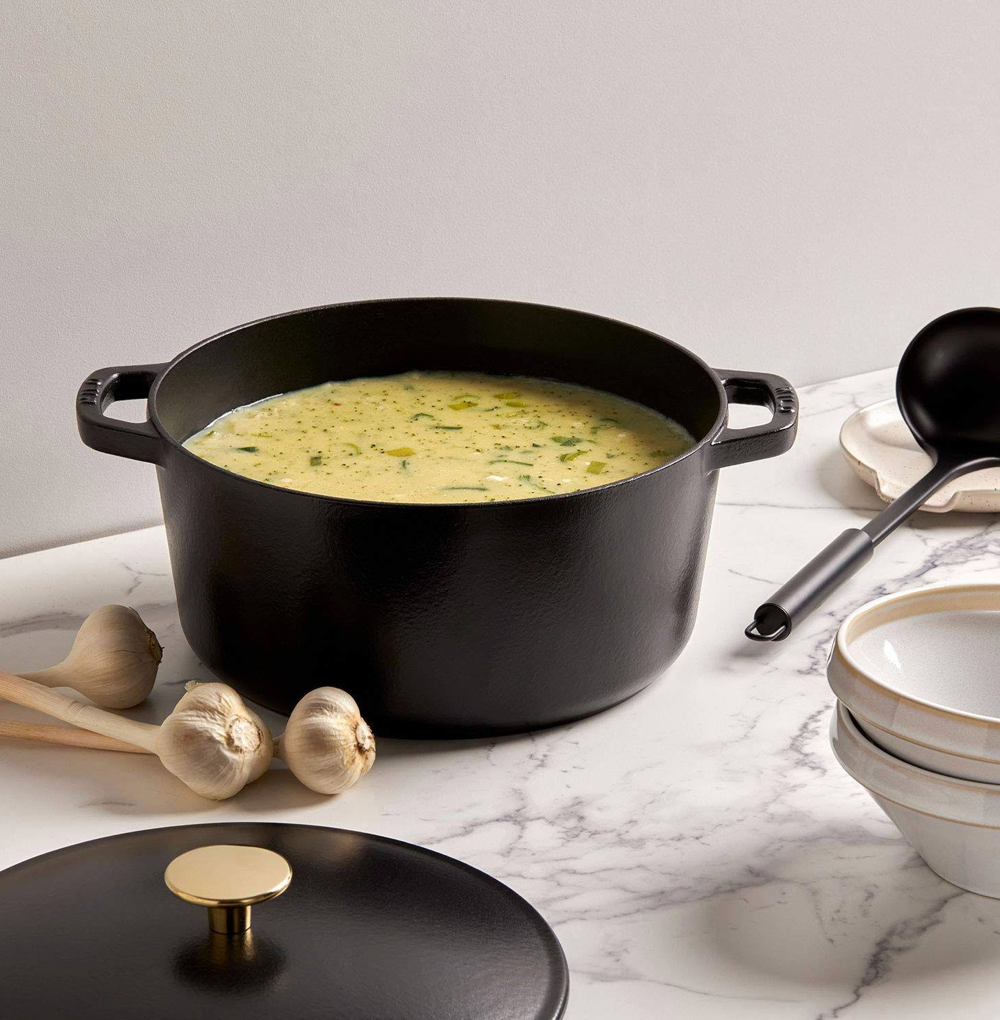 - Enameled cast iron doesn’t require complex seasoning.