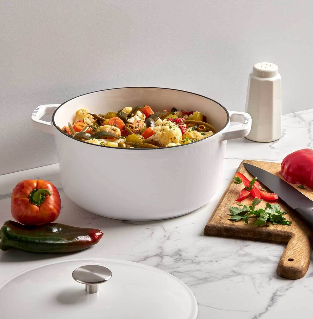 - Our minimal and colorful Dutch ovens are the perfect complement to the utilitarian look of stainless steel cookware.