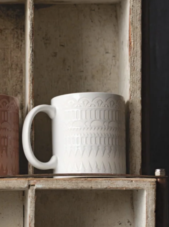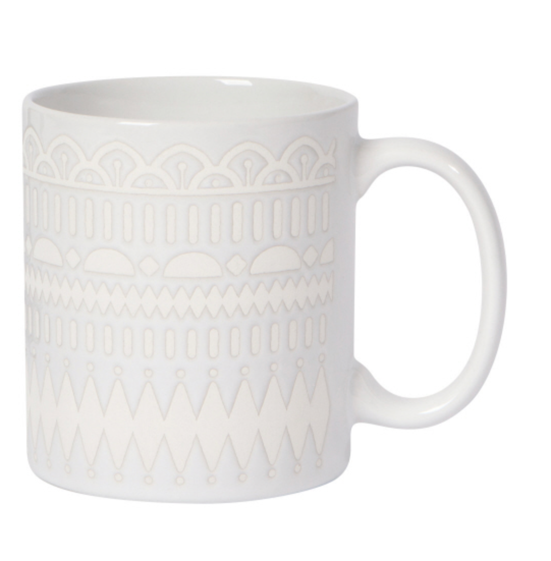 Savor your favorite drinks in style with the Gala White Mug. Crafted with a bold tactile pattern and ornamental details, this cup is perfect for the coffee lover who wants to bring a little luxury to their morning routine. Make every sip an adventure!