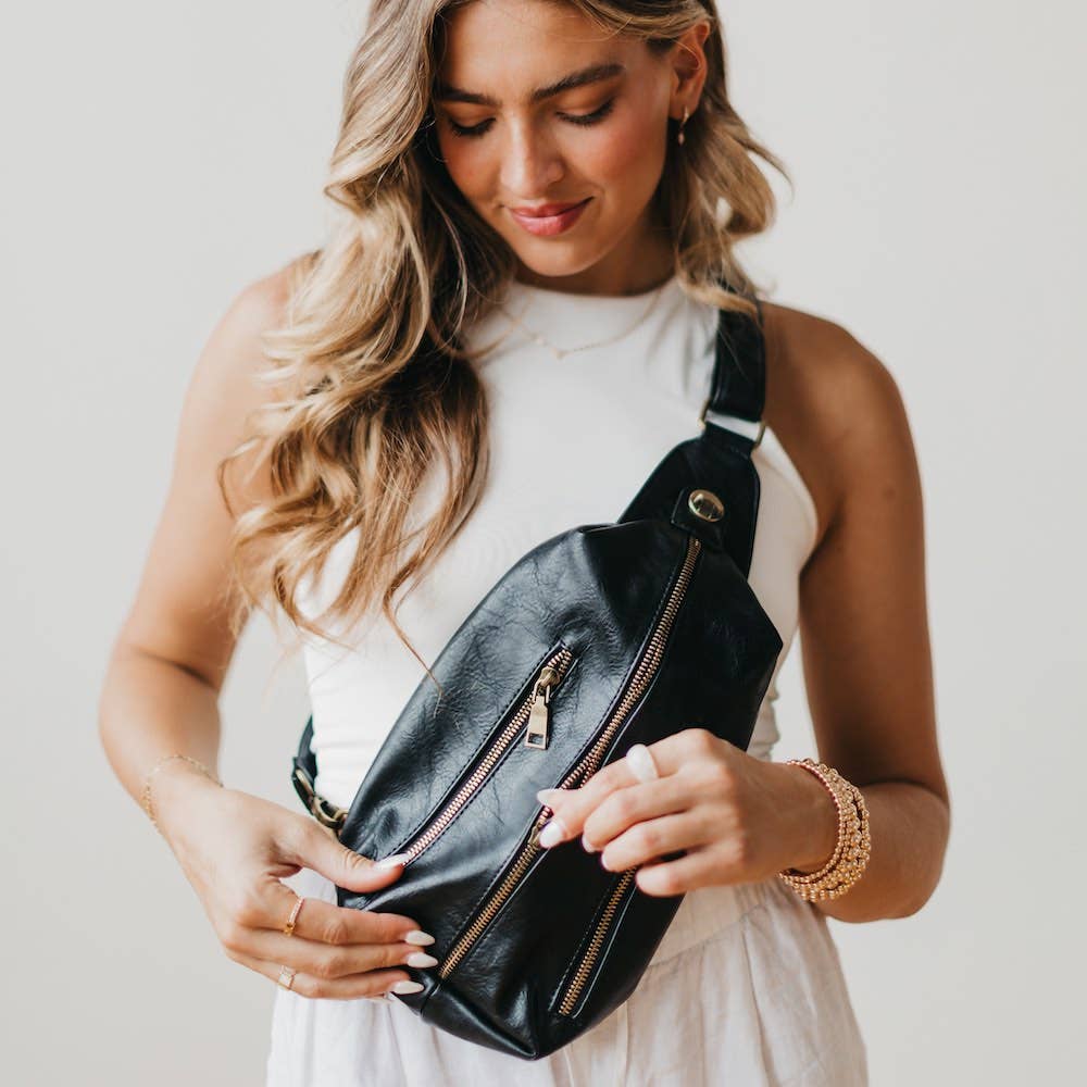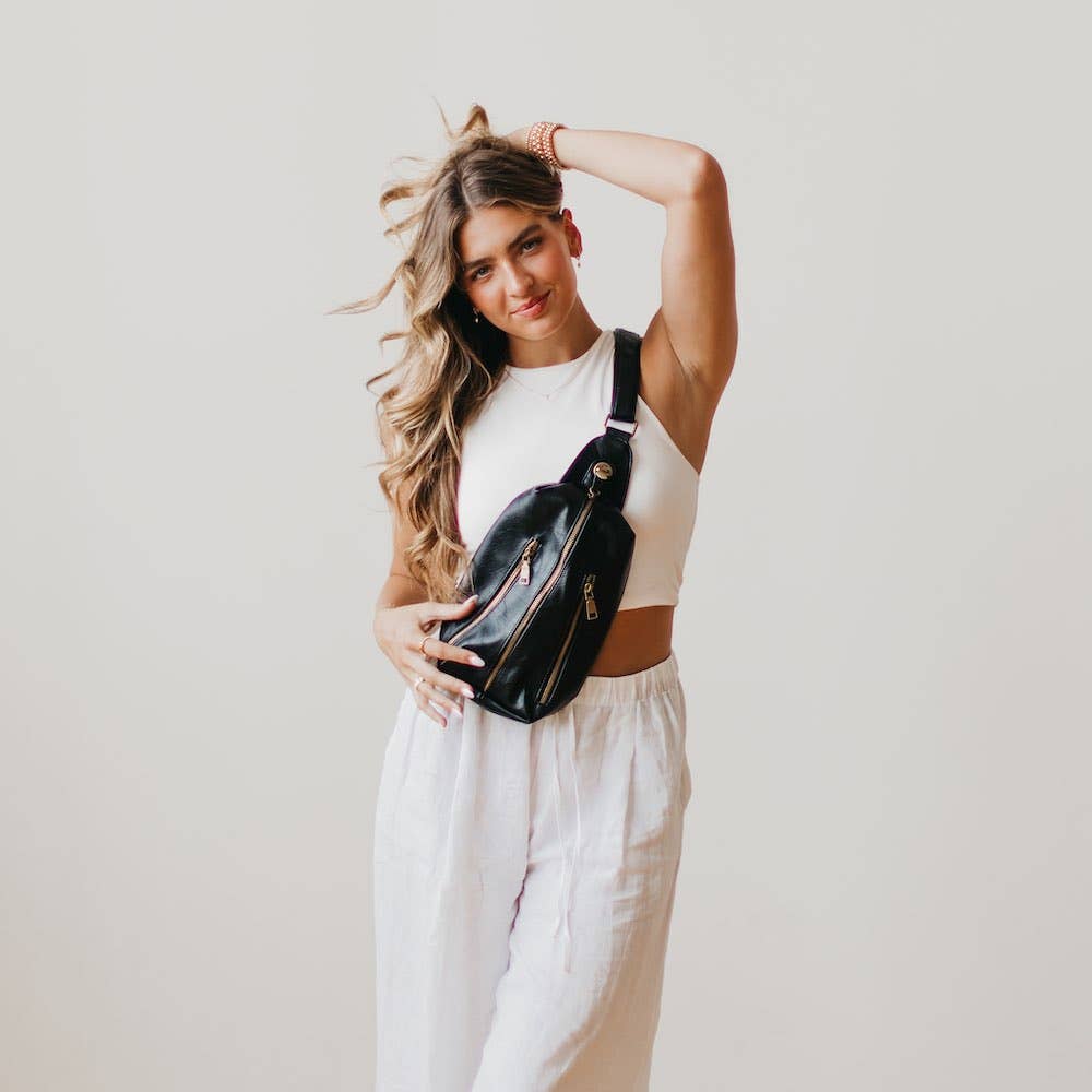 Introducing the Sangria Sling, your new BFF (Best Fashion Friend) that's ready to add a touch of boho-chic to your looks! Made from high quality faux leather, this bag has an adjustable strap and can be worn on either side of your body, or even on your back! It includes an exterior zipper lock, two exterior zipper pockets, the main bag compartment, and an interior zipper pocket. This bag does it all while making your look next level!