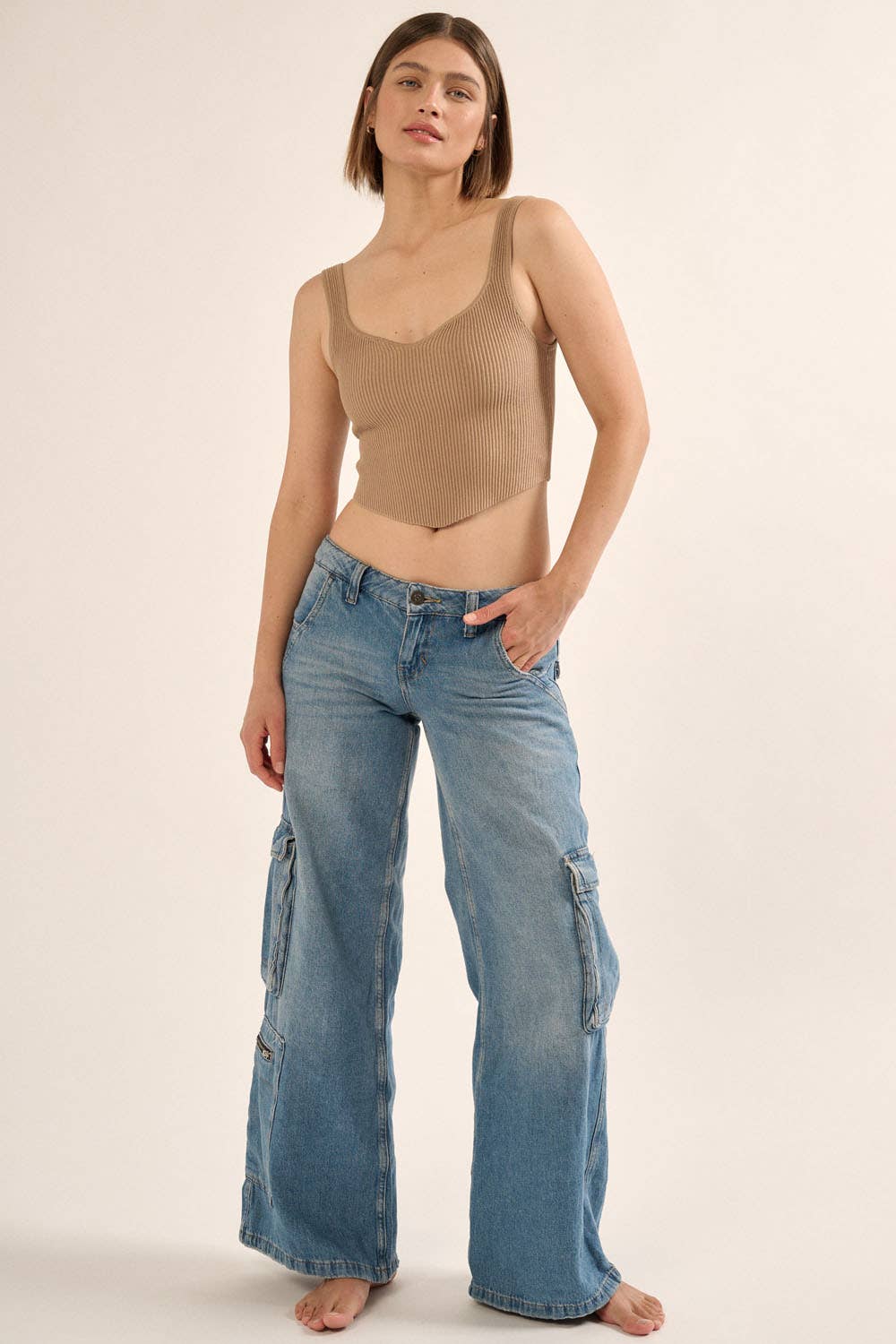 A solid, ribbed knit tank top with the following features: Scoop neckline with banded ribbed trim. Sleeveless. Tank shoulder straps. Bandana hem. Low scoop back. Fitted silhouette. Shaper Fit styles feature premium stretch fabric and contour fit designed to sculpt the body.