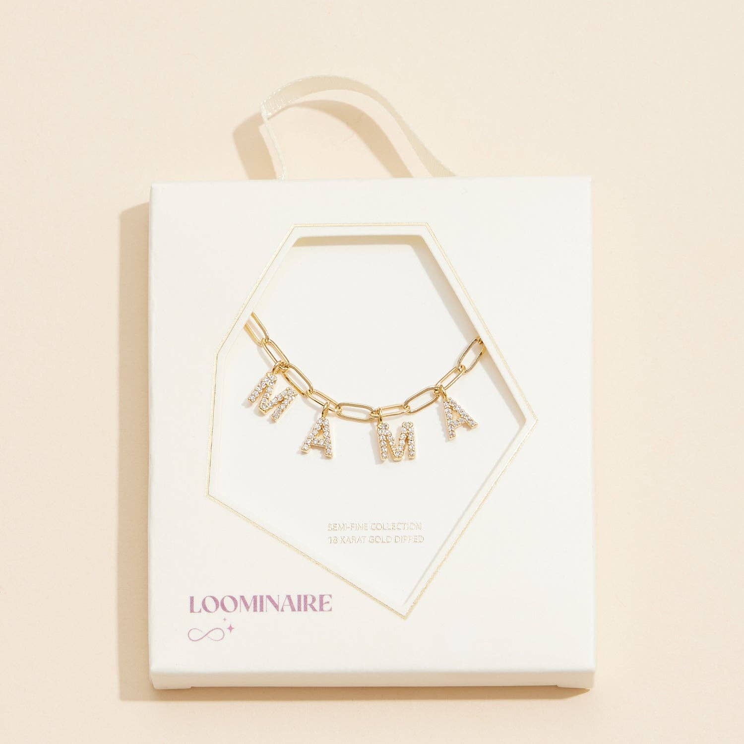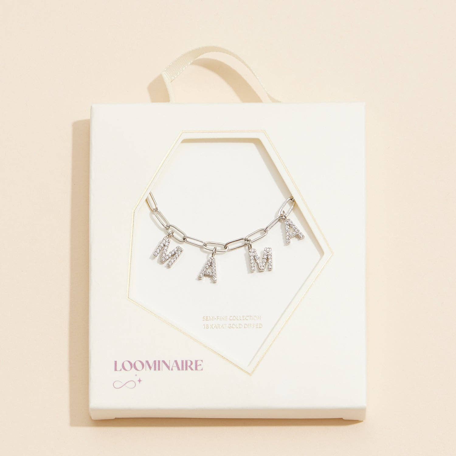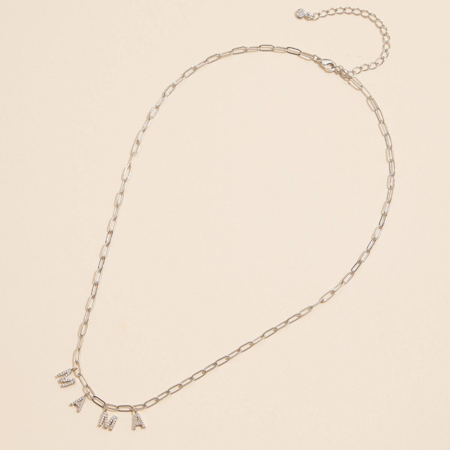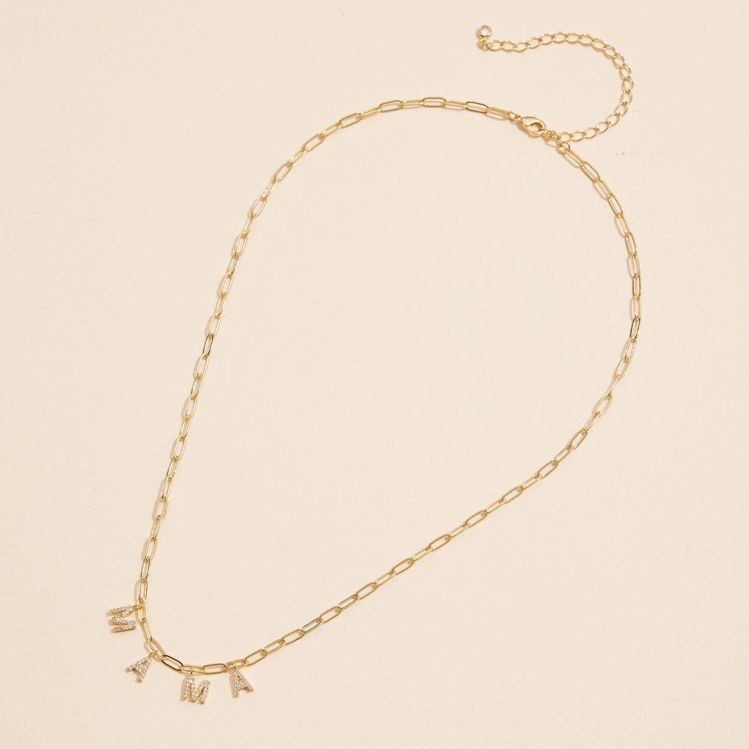 Celebrate motherhood with this striking "MAMA" charm necklace, where each letter is adorned with shimmering cubic zirconia stones. The unique link chain design is available in 18K gold or silver dipped, making it a versatile and elegant addition to any jewelry collection. The dazzling cubic zirconia gemstones add just the right amount of sparkle, perfect for both everyday wear and special occasions. Whether it's a gift for yourself or a special mama in your life, this adjustable necklace is sure to make a lasting impression.
