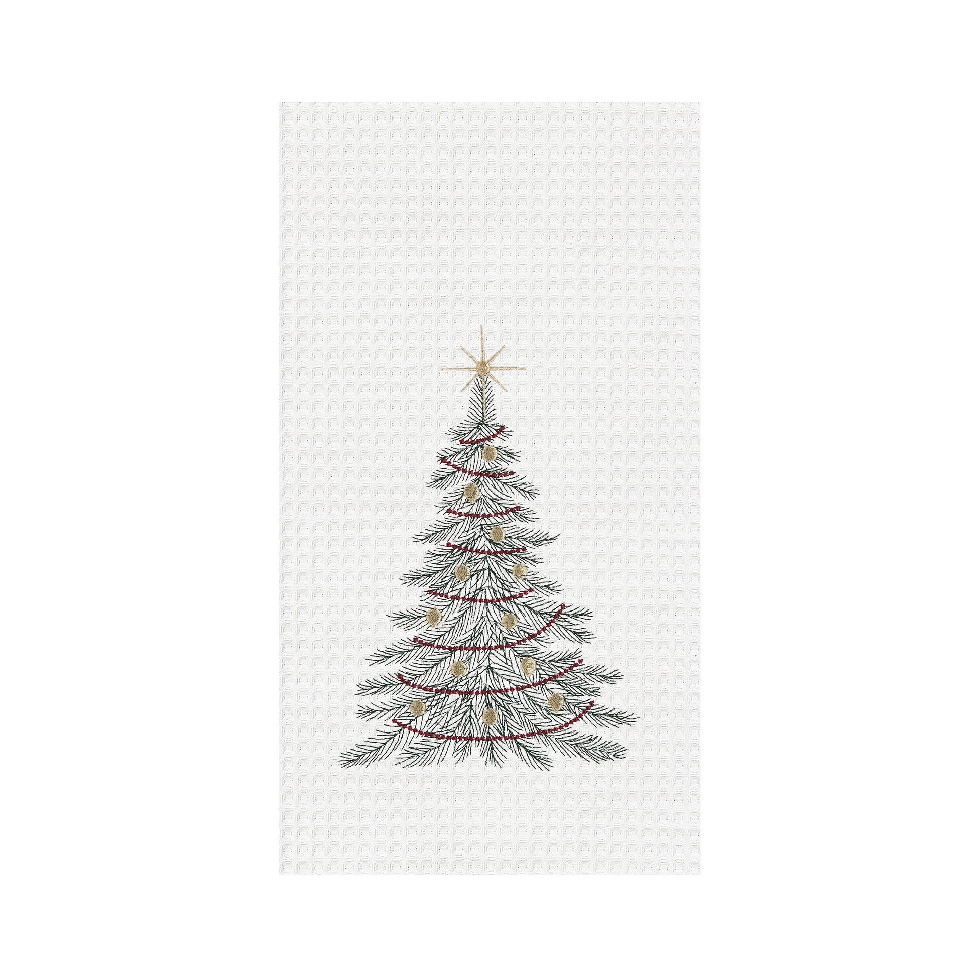 Welcome the holiday season with the Traditional Christmas Tree kitchen towel. This festive towel features an embroidered design that will bring plenty of holiday cheer to your kitchen. Made from cotton, this soft and absorbent kitchen towel is designed to last through all your holiday baking and cooking adventures.