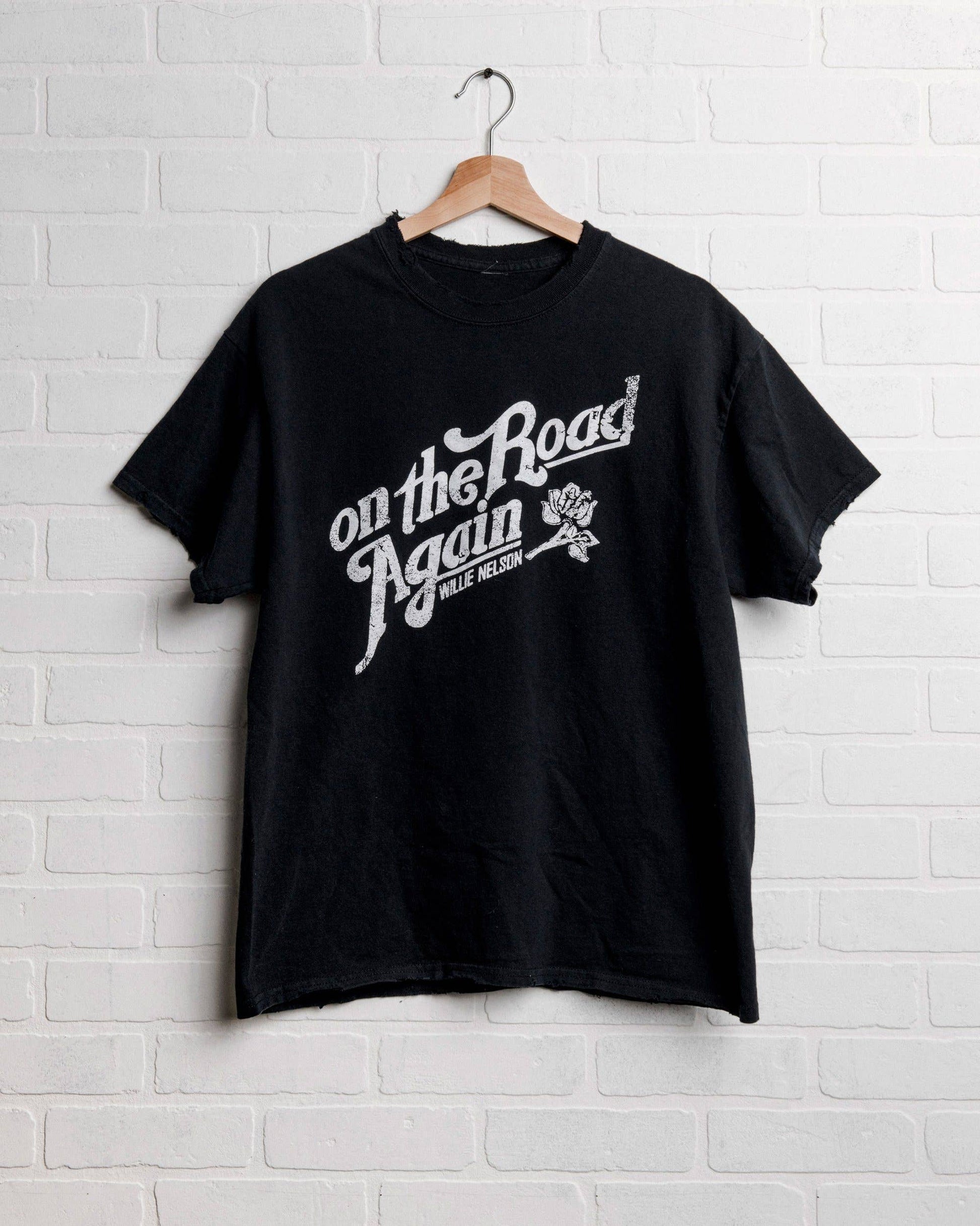 Willie Nelson On The Road Again Black Thrifted Graphic Tee