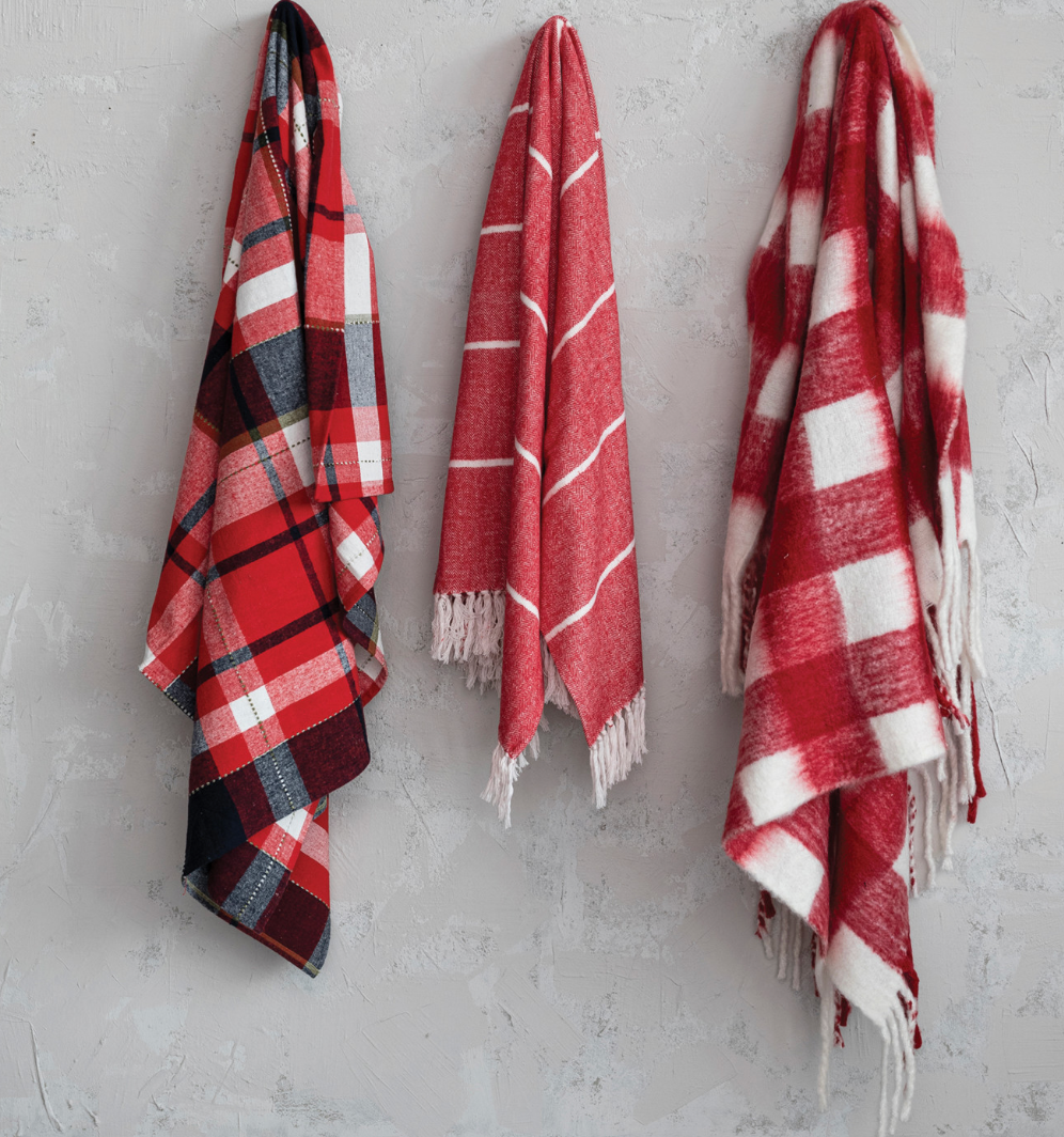 This classically designed throw blanket features a versatile plaid print and soft decorative fringe. Cuddle up in cozy comfort with our luxurious collection of throw blankets, crafted from sumptuously soft materials and available in a variety of stylish designs, from classic holiday motifs to contemporary patterns.